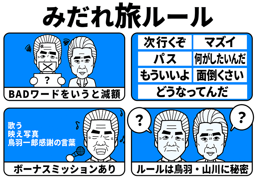 この旅をさらに面白くするのが、番組が事前に仕掛けた秘密のルール。